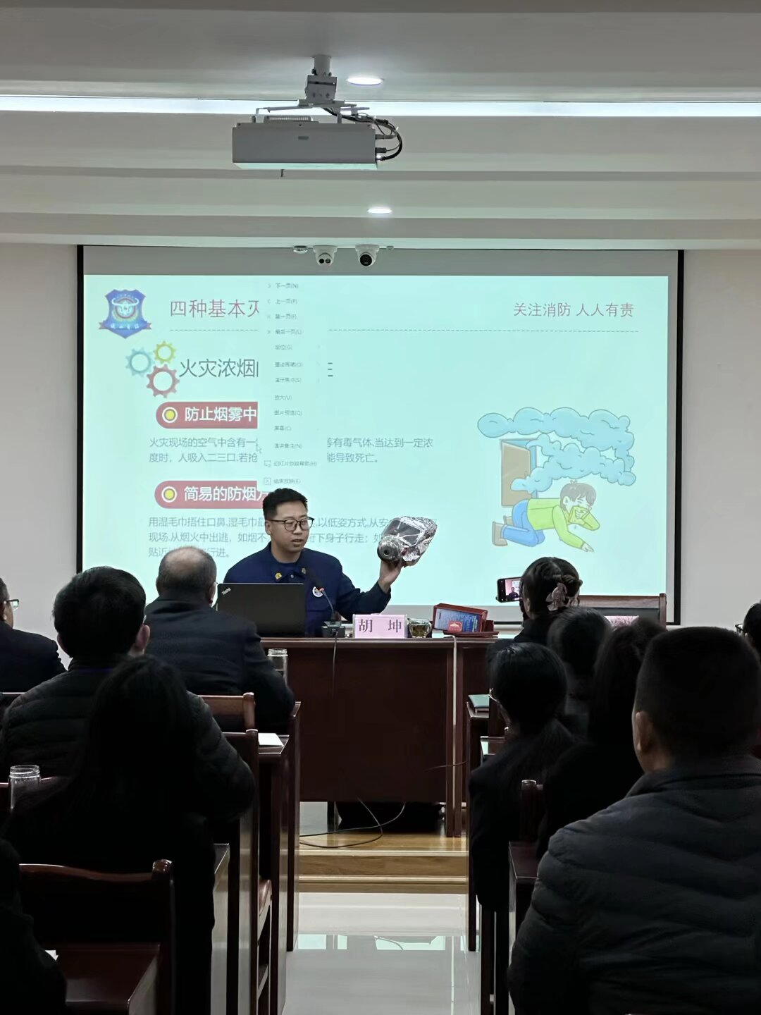 会议邀请县消防救援局宣传员胡坤同志对日常生活中经常遇到的消防安全知识作培训讲解;邀请县地震局办公室主任刘虹芳同志对地震避险知识作授课培训。两位老师授课深入浅出、结合实际、实操性强,全体干部职工收获满满。