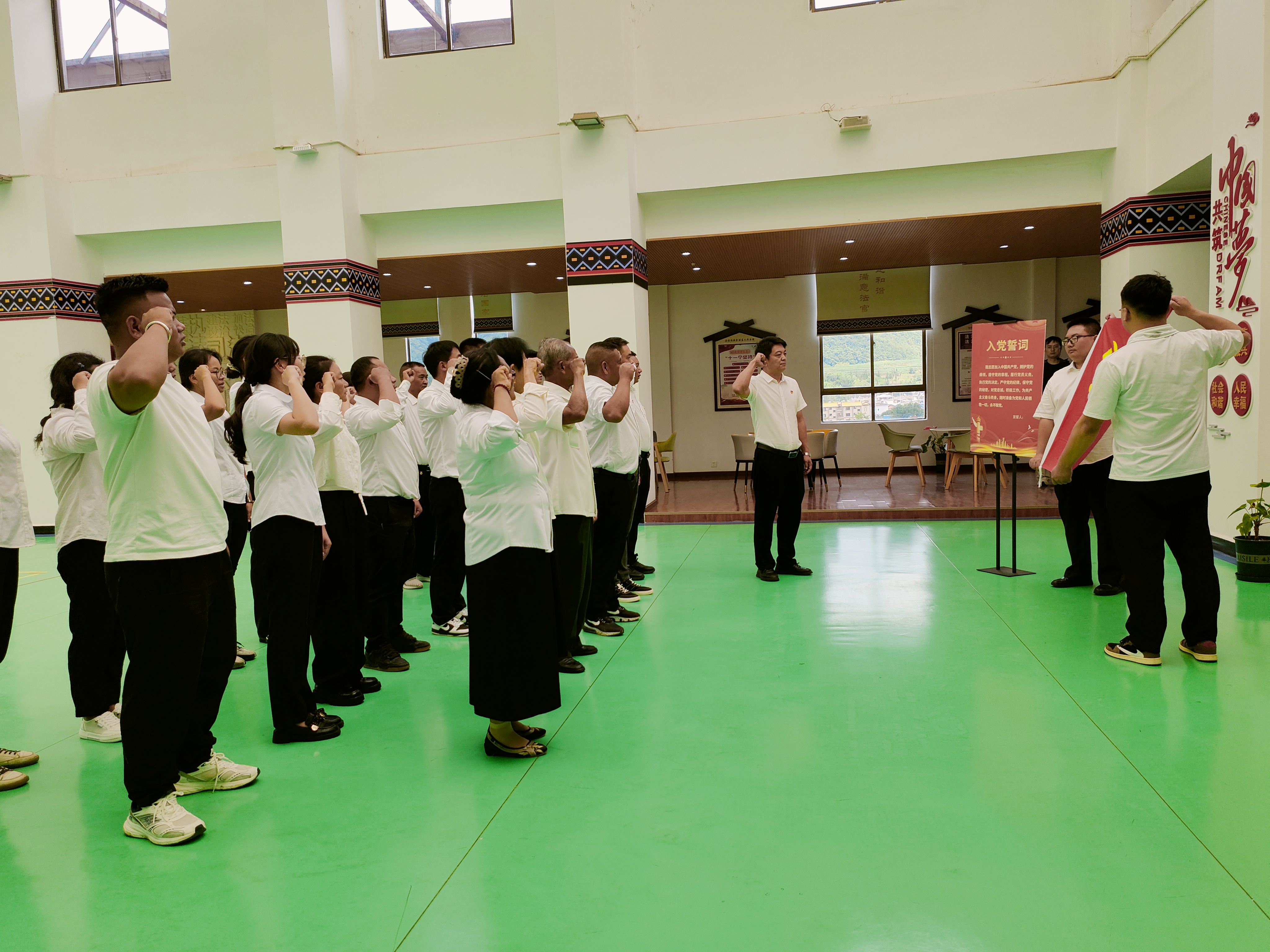 活动最后,在鲜红的党旗前,全体党员庄严肃立,举起右拳,重温入党誓词,铿锵有力的誓言在会议室中回荡,表达了党员们对党的无限忠诚和为共产主义事业奋斗终身的坚定决心。