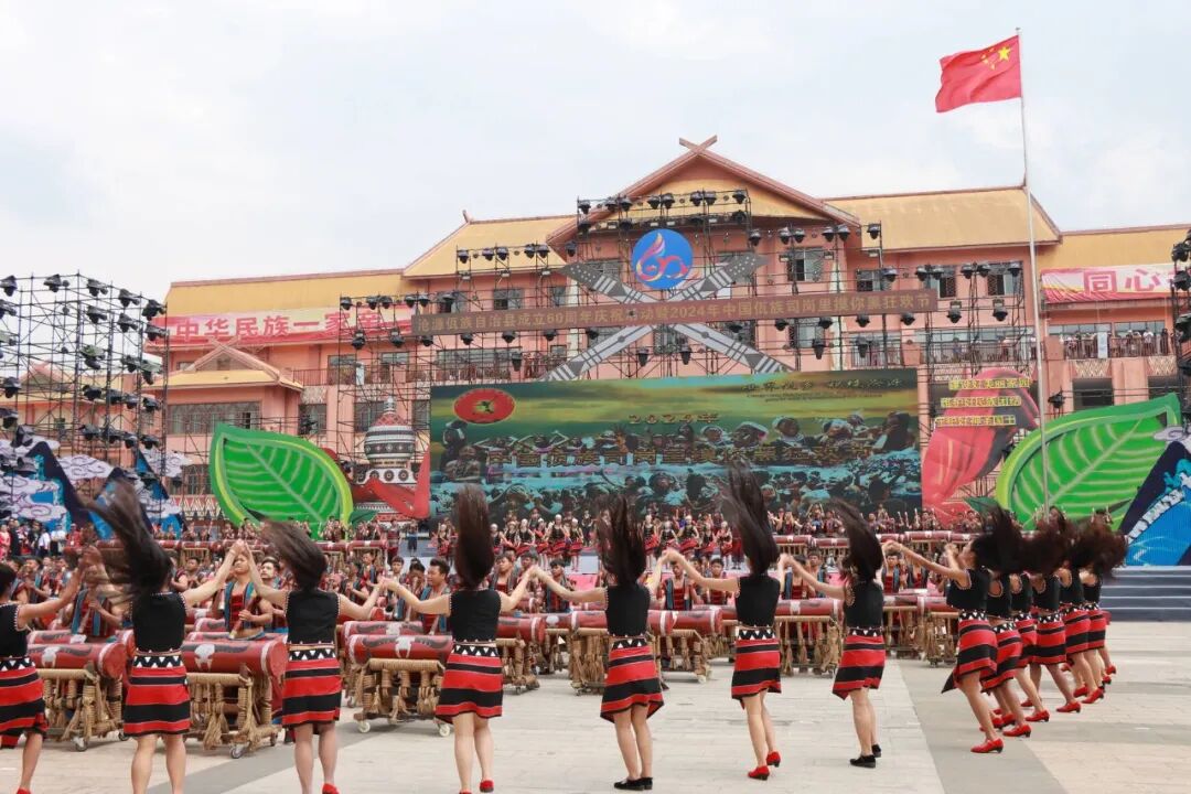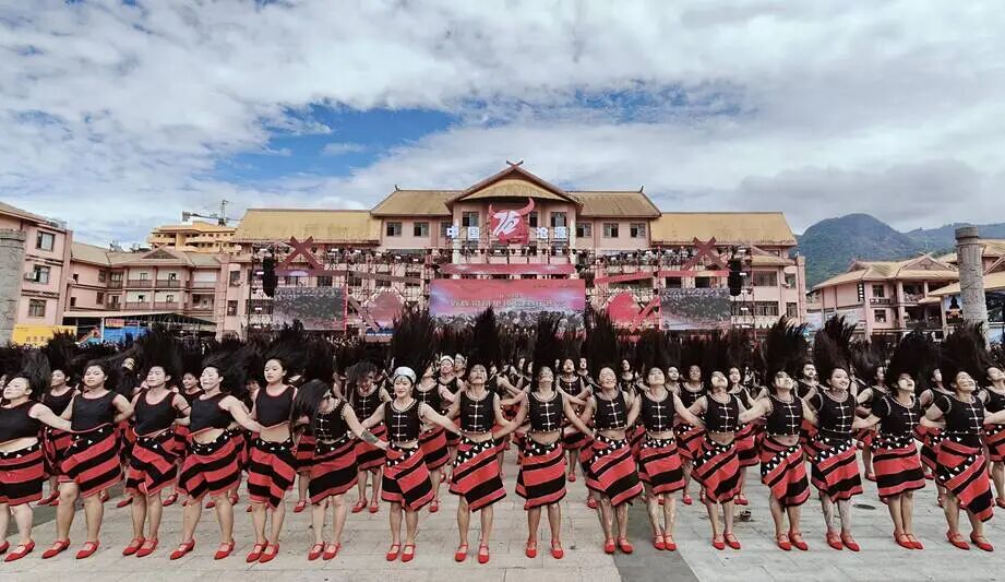 作为狂欢节的核心活动,百台木鼓千人甩发与摸你黑狂欢主题活动,是展现佤族非遗与民俗祝福的重要载体。活动期间,上百面佤族木鼓同步敲响,鼓声雄浑厚重、响彻山谷,身着民族盛装的佤族女子整齐列队,甩动长发翩翩起舞,刚柔并济的舞姿尽显佤乡儿女的灵动与豪迈。