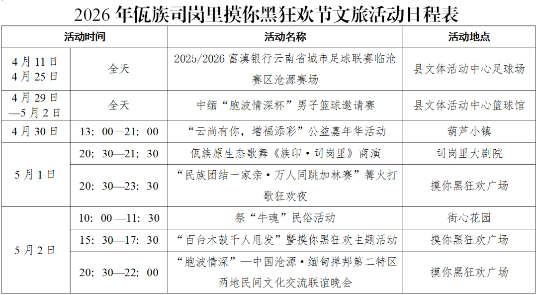 一年一度的沧源司岗里“摸你黑”狂欢节即将盛大开启,作为沧源最具代表性的民俗节庆活动,今年组委会精心策划推出多项特色主题活动,将原生态民族文化、沉浸式互动体验、潮流文旅游业态融为一体,为广大游客献上一场独具魅力的文旅盛宴。