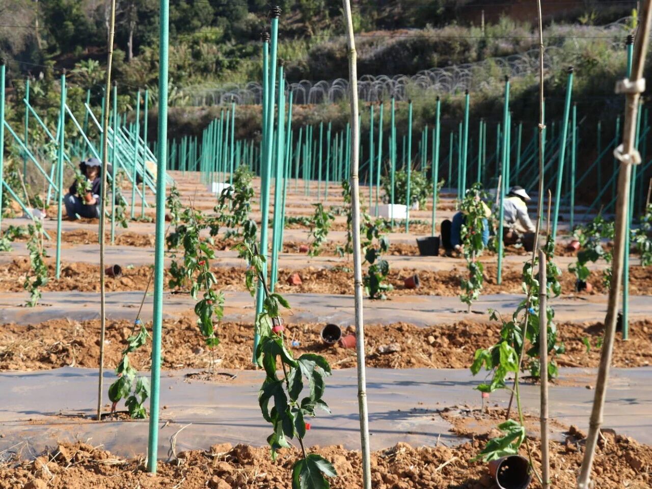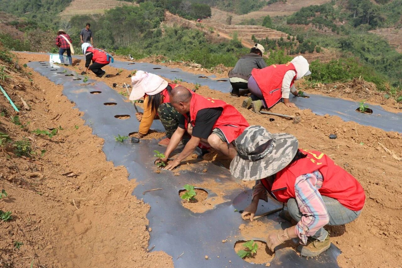 走进下班老村的百香果新植地块,二十多个村民正忙着挖坑、定植、浇水,分工有序,热火朝天。“底肥要拌均匀,苗子栽下去浇透定根水……”农技员蹲在地头,从株行距到水肥管理,每个环节都严格把关。