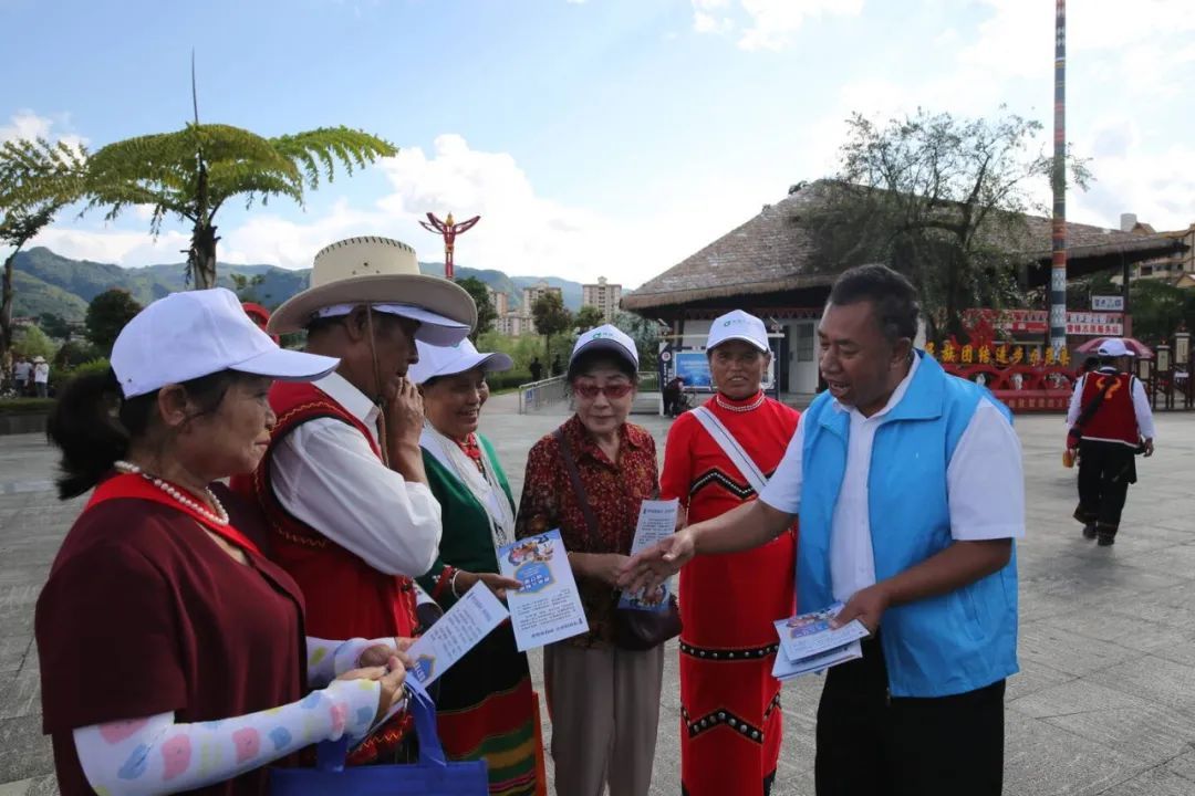 一次敬老孝老活动:深入勐董社区、永和社区等开展敬老孝老文化传承教育活动,宣传赡养老人、爱老护老相关法律知识,倡导鼓励老年人亲属子女“常回家看看”,给予老年人更多亲情关怀和温暖陪伴,弘扬敬老孝老传统美德,营造浓厚敬老爱老社会氛围。