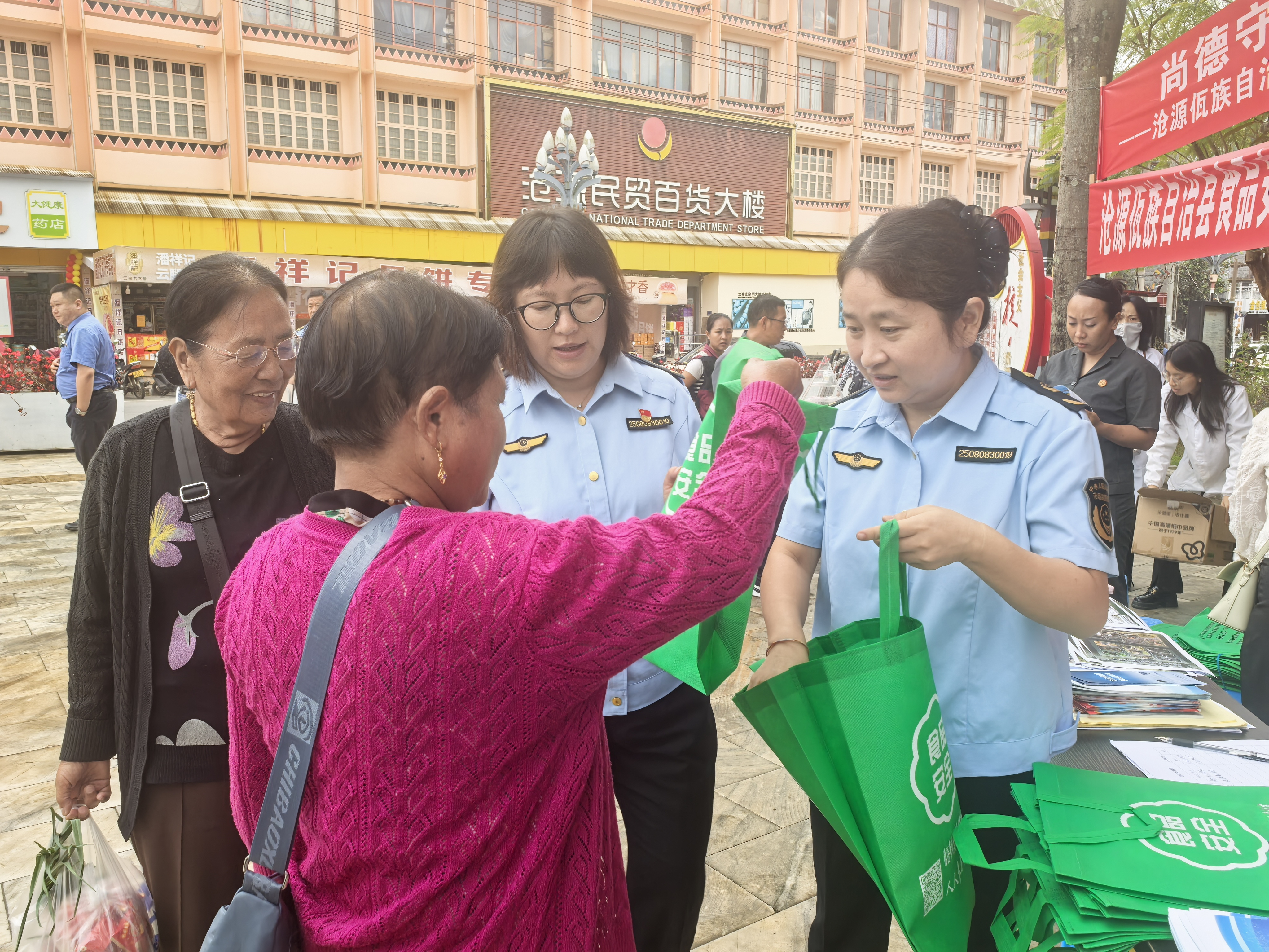 为进一步普及食品药品安全、质量监管、个体工商户发展知识,提高群众安全防范能力,近日,沧源佤族自治县市场监管局协同县级有关单位开展“尚德守法 共享食安”“聚力赋能 个个精彩”“加强全面质量管理 促进质量强国建设”“药品安全 监管为民”等多个主题的宣传活动。