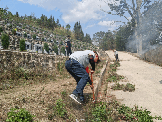 及时清扫公墓,提高服务意识。县民政局牵头,联合沧源民洁公司开展农村公益性公墓卫生清扫公益活动,对公墓的环境卫生进行了全方位的清理,清理清明节留下的祭祀用品、清除杂草、清扫落叶,清理了公墓区域卫生死角,有效地改善了公墓的环境卫生面貌,为前来祭拜已故亲人的人民群众创造了整洁干净的祭扫环境。