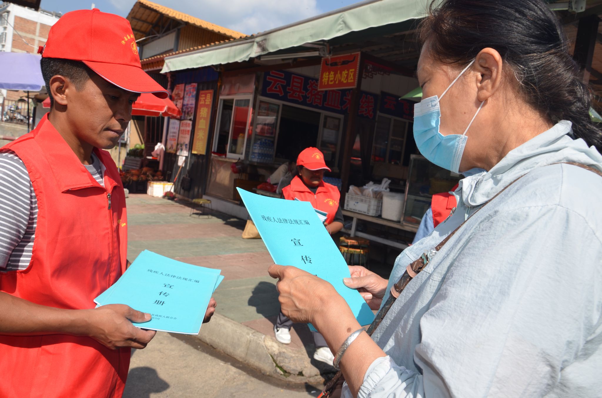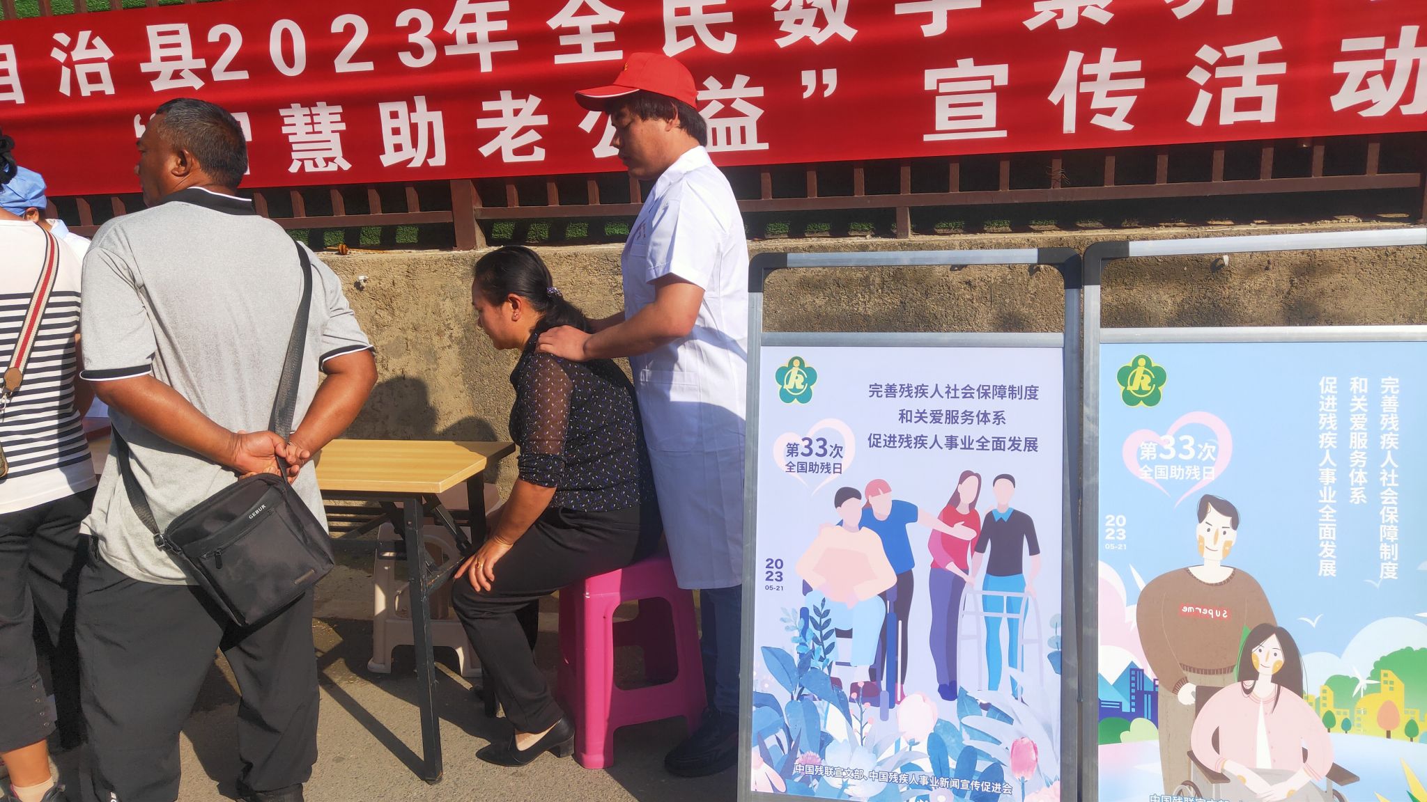 活动通过宣传展板、发放宣传册和宣传单、播放公益广告音频等形式,大力宣传惠残助残政策及残疾人证办理流程,提高广大群众对惠残助残政策的知晓率;大力宣传《中华人民共和国民法典》《中华人民共和国残疾人保障法》《残疾人教育条例》《残疾人就业条例》《残疾预防和残疾人康复条例》《无障碍环境建设条例》等法律法规,强化残疾人权益保护意识;邀请县医院医师、护士现场为群众宣传普及残疾预防、眼睛及耳朵保护等知识,现场为群众免费提供义诊服务;邀请盲人按摩师现场为群众提供保健按摩体验,加强广大群众对残疾人就业创业的关心关爱。