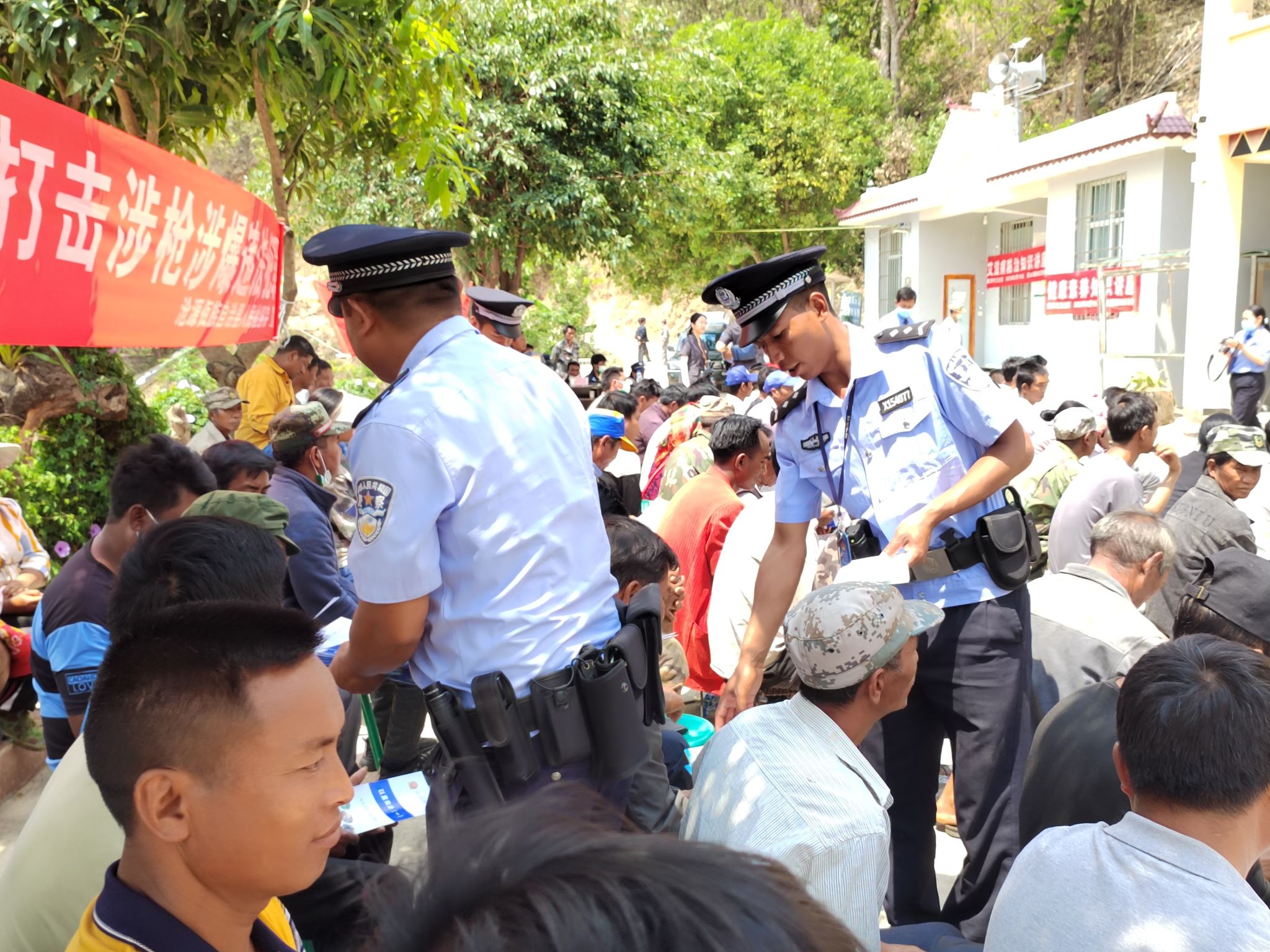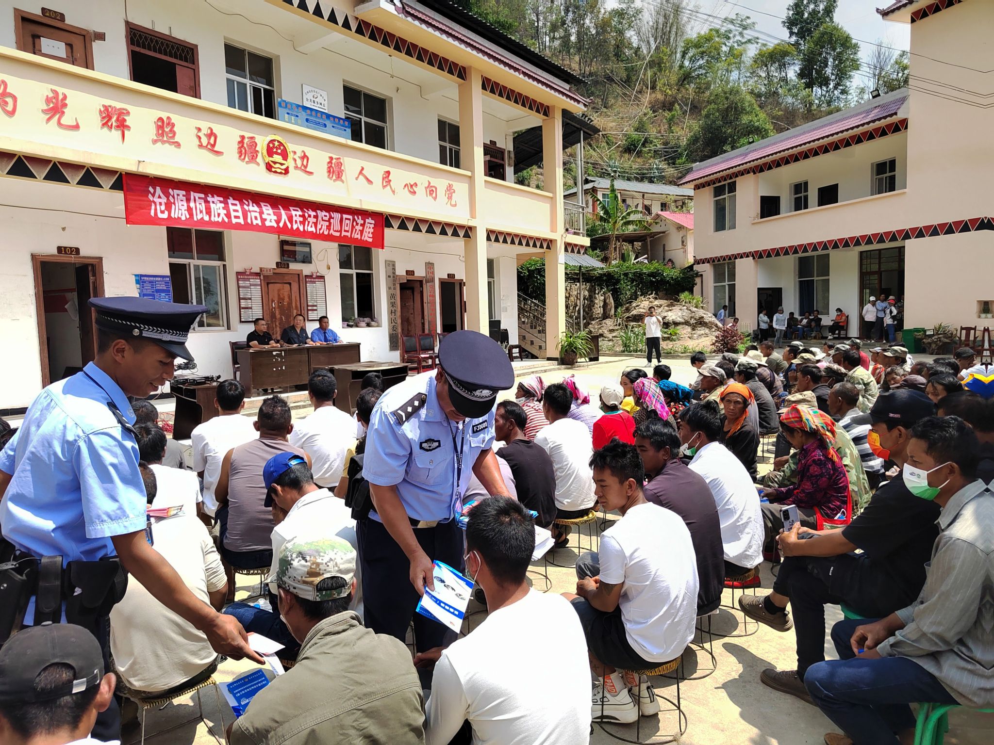 为严厉打击整治枪爆违法犯罪,进一步提高广大群众的法治意识,有效震慑各类枪爆违法犯罪的发生。近日,沧源警方以县人民法院在岩帅镇黄果村开展巡回审判活动为契机,组织民警现场开展普法宣传。