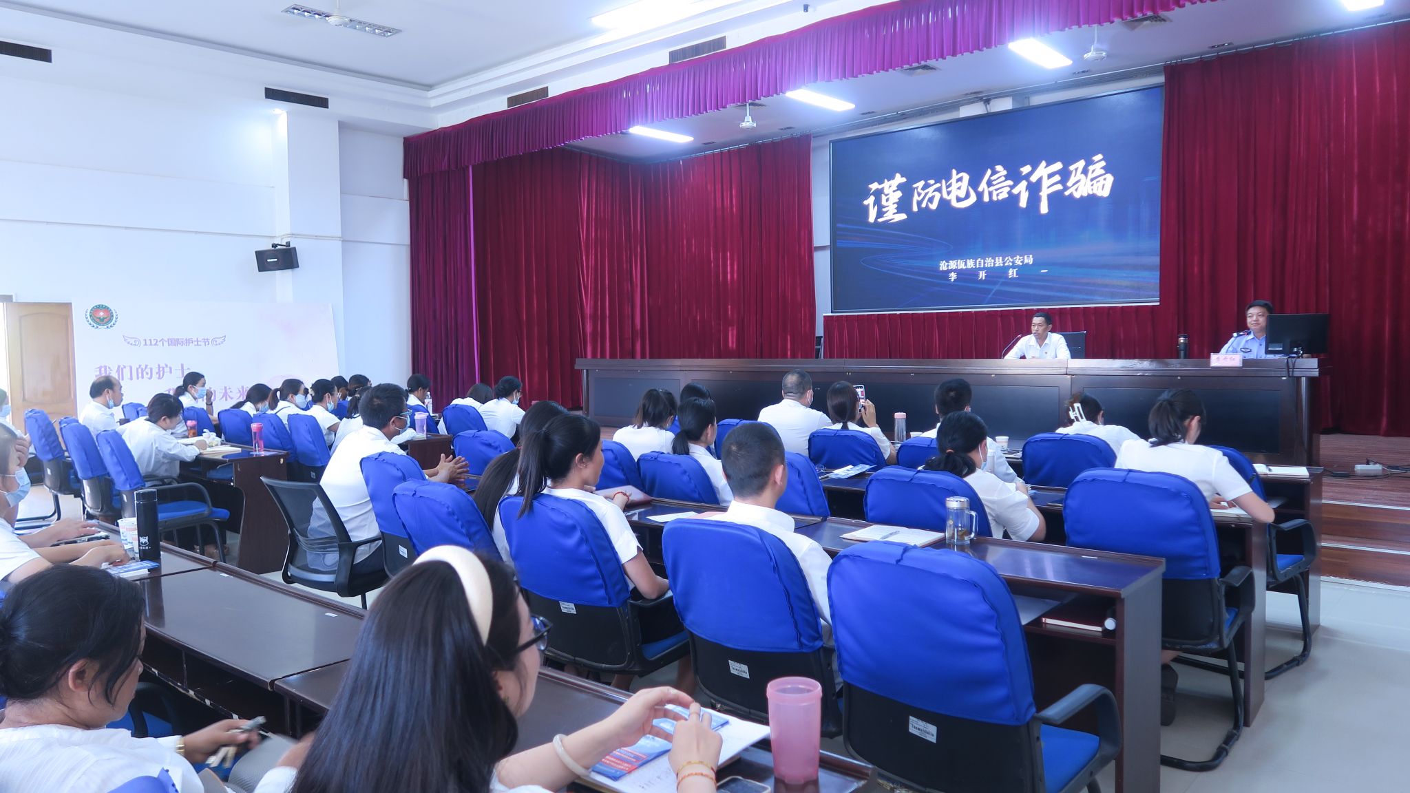 为进一步增强医护人员辨别各类电信诈骗的能力,提升医护人员的法治意识,切实维护好医护工作人员财产安全和切身利益,近日,沧源佤族自治县公安局刑侦大队深入县人民医院开展防范电信网络诈骗培训会。