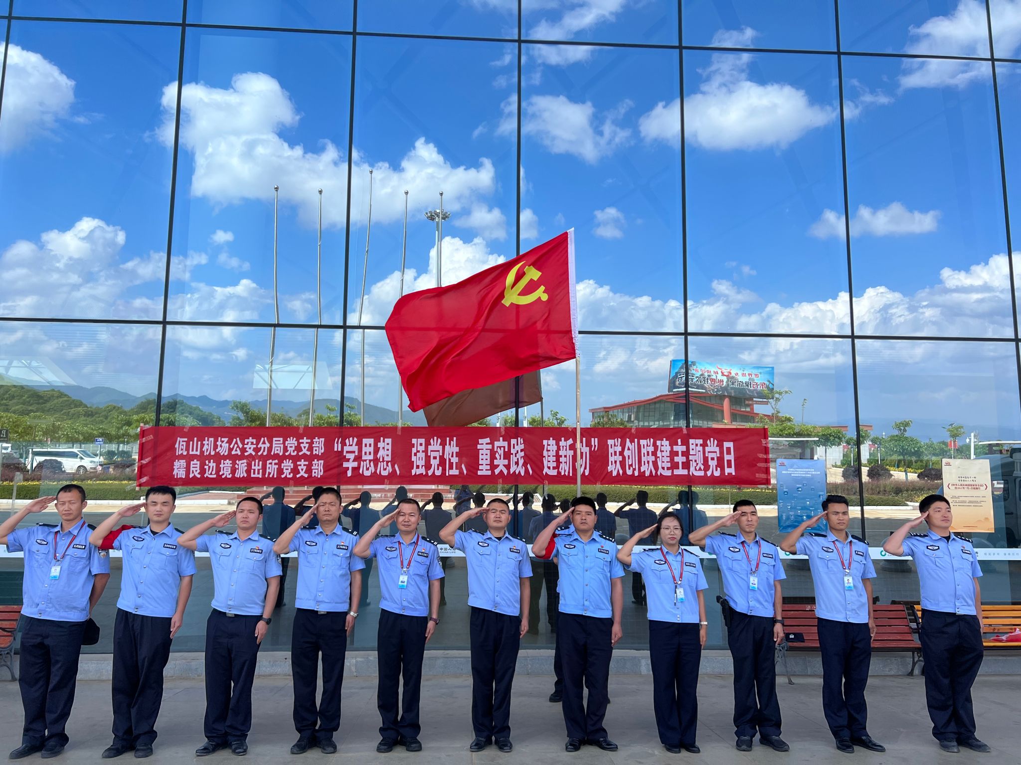 糯良边境派出所党支部坚持以习近平总书记“四句话、十六字”作为队伍建设立足点,打造政治坚定,业务精通,作风优良的高素质党员队伍。近日,联合佤山机场公安分局党支部开展“学思想、强党性、重实践、立新功”主题党日活动。