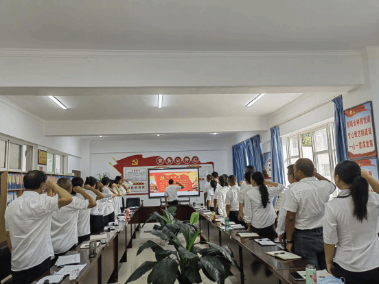 同升一次国旗、同唱一次国歌、宣读《党的二十大报告节选》,以崇高的敬意向国旗、向伟大祖国致敬。