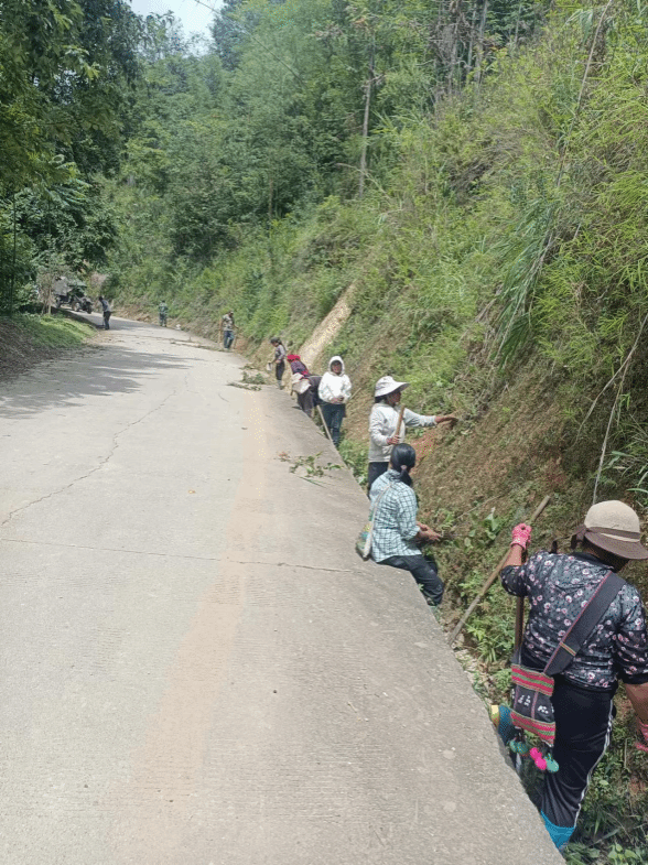 雨季临近,为维护良好的公路路域环境,扩大公路养护范围,消除公路安全隐患,助力“绿美建设”,连日来,岩帅镇岩丙村组织党员群众积极开展“道路”养护行动。