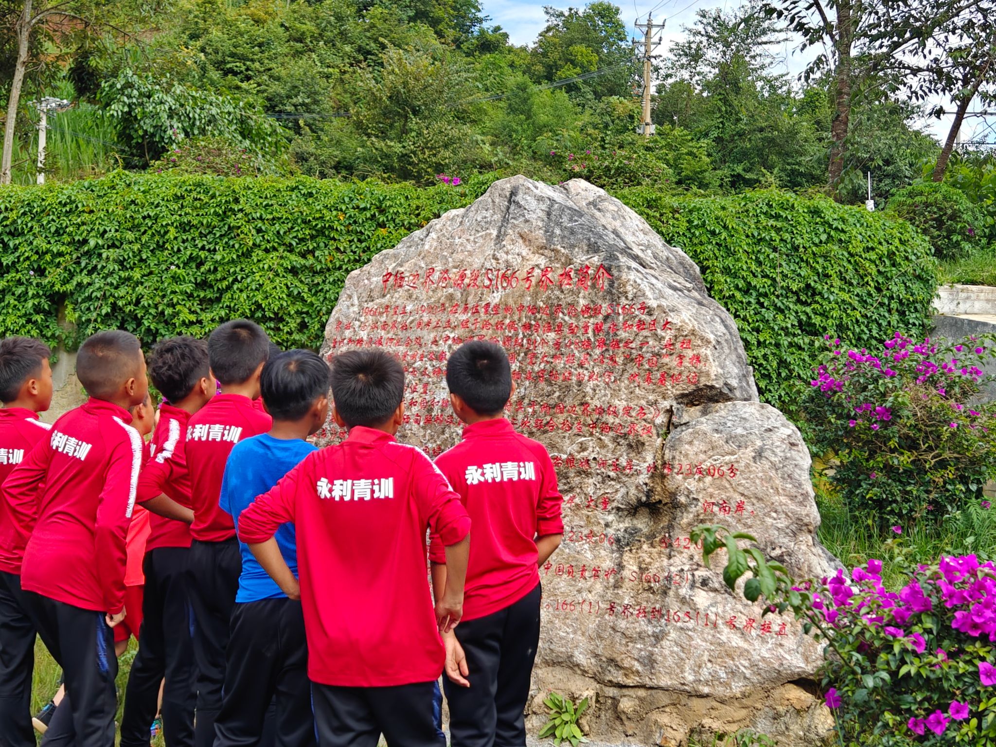 切实将爱国情、强国志、报国行融入到邀请赛赛事活动的全过程,突出铸牢中华民族共同体意识教育,组织球队小朋友们参观班洪抗英纪念馆、游览国门新村、下班坝村和166界碑,学习习近平总书记给边境村老支书们的重要回信精神,聆听震惊中外的班洪抗英事件、班老回归故事以及班洪“四大嫂”精神等等,充分弘扬革命精神、民族精神、时代精神和爱国主义精神,培育青少年从小立下为中华之崛起而读书的宏大志向,把自己的人生同中华民族的命运紧密联系在一起,让中华民族共同体意识根植各族青少年心灵深处,不断增强爱国爱家情怀。