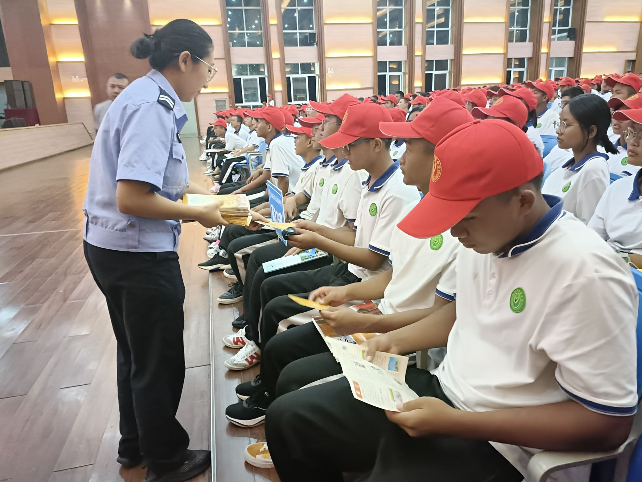 为进一步夯实校园交通安全宣传教育工作,全面提高辖区师生的交通安全意识和自我保护能力,有效预防和减少涉校道路交通事故的发生。2023年9月4日晚,沧源佤族自治县公安局交警大队勐董中队组织民警深入县民族中学开展“秋季开学第一课 交通安全进校园”主题宣传活动。