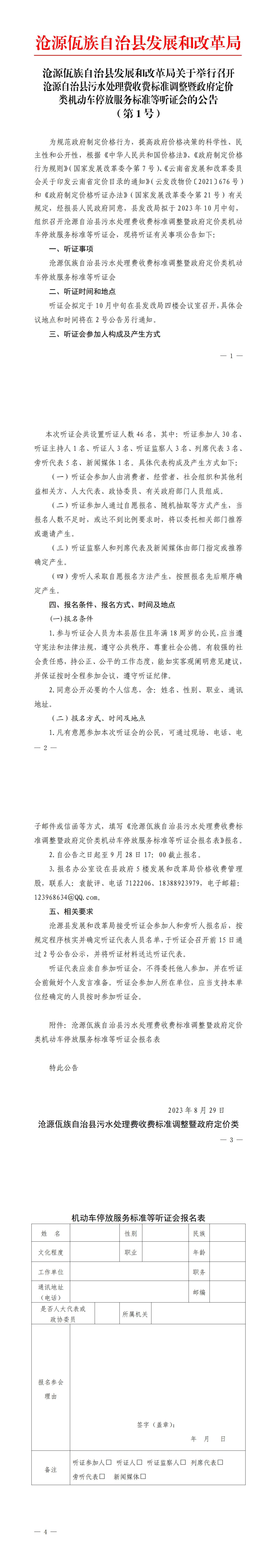 沧源佤族自治县发展和改革局关于召开沧源自治县污水处理费收费标准调整暨政府定价类机动车停放服务标准等听证会的公告(第1号) (2)