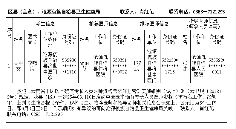 云南省中医医术确有专长人员医师资格考核报名公示信息汇总表(县级公示)