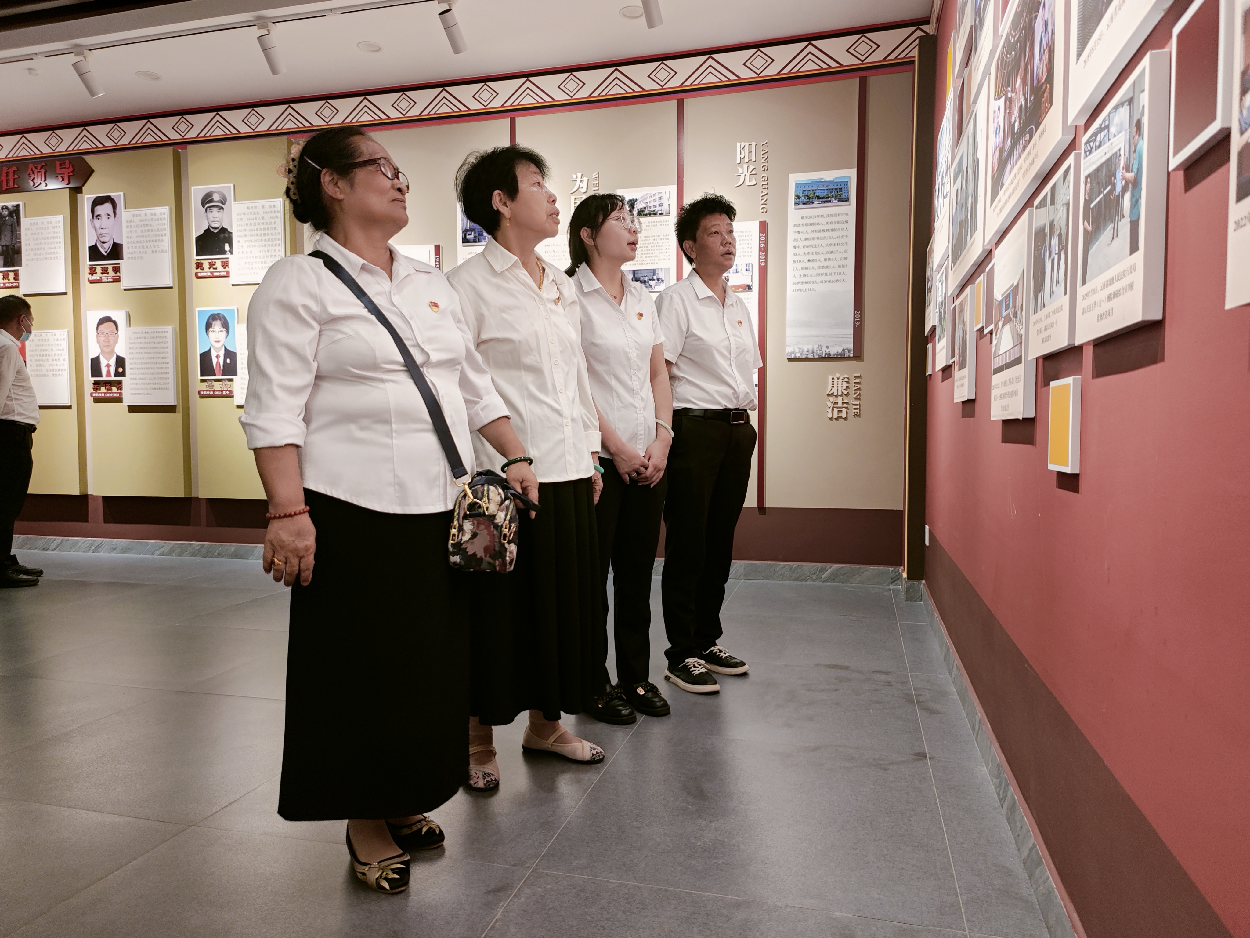 党员干部们走进法院党建长廊,一幅幅珍贵的图片、一段段翔实的文字,生动展现了中国共产党波澜壮阔的奋斗历程,以及人民法院在党建引领下公正司法、司法为民的实践成果。党员们沿着长廊缓缓前行,认真聆听讲解,深刻感受党的光辉历史与伟大精神,从中汲取信仰的力量。“荣誉不仅是过往的勋章,更是未来的航标”,参观结束时,大家都有相同的感悟。这场与荣誉的近距离对话,让党员干部们深刻认识到司法工作者用忠诚与专业守护公平正义的使命,也激励着大家在各自岗位上以奋斗书写荣光。
