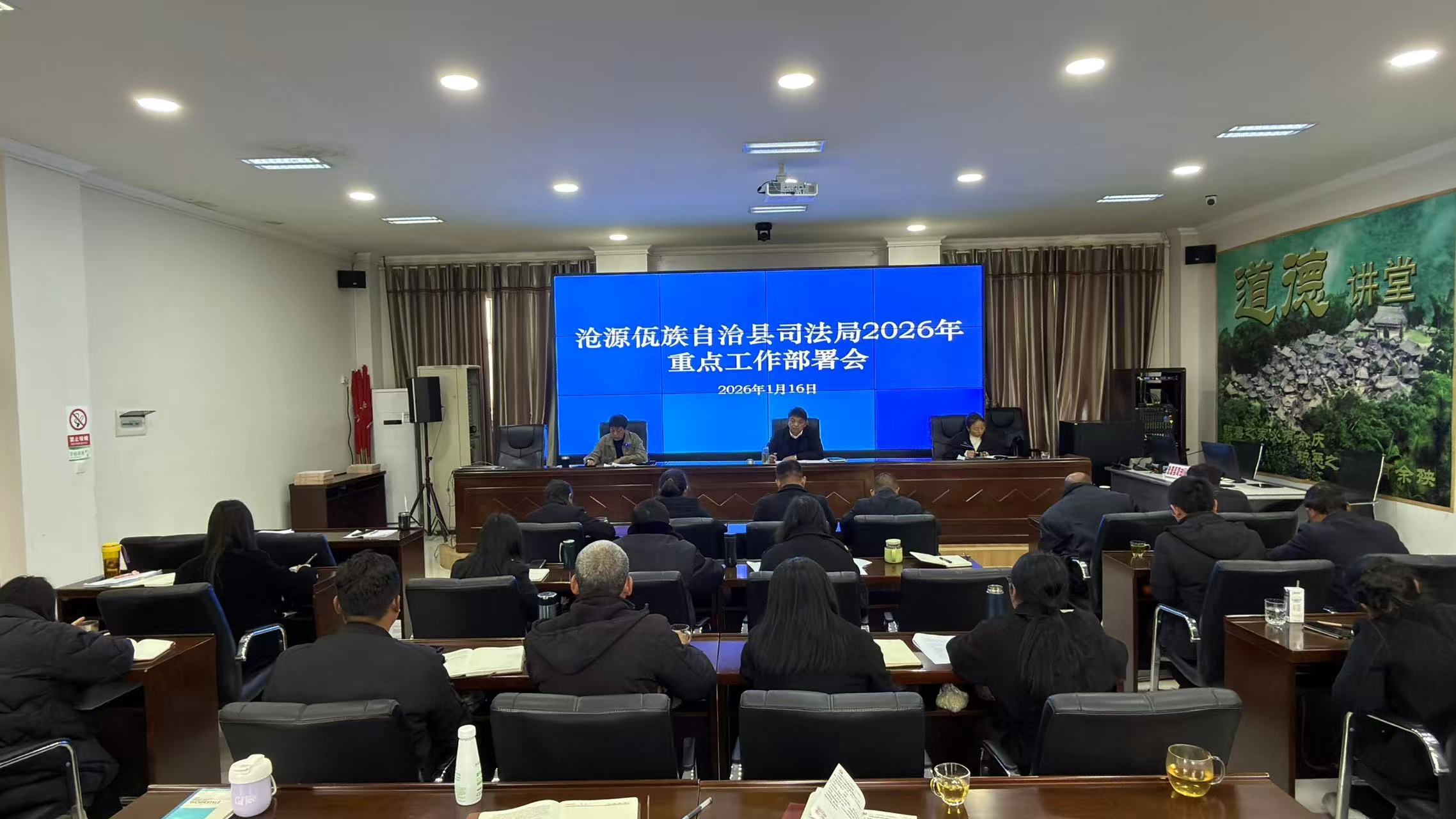 为全面贯彻习近平法治思想,落实上级司法行政工作部署与县委、县政府中心工作要求,近日,沧源县司法局召开2026年度重点工作部署会,以年度重点工作为核心载体,系统解读目标任务、细化责任分工、明确推进路径,推动全县司法行政工作开好局、起好步。局领导班子成员、各股室及基层司法所负责人、全体干部职工参加会议。