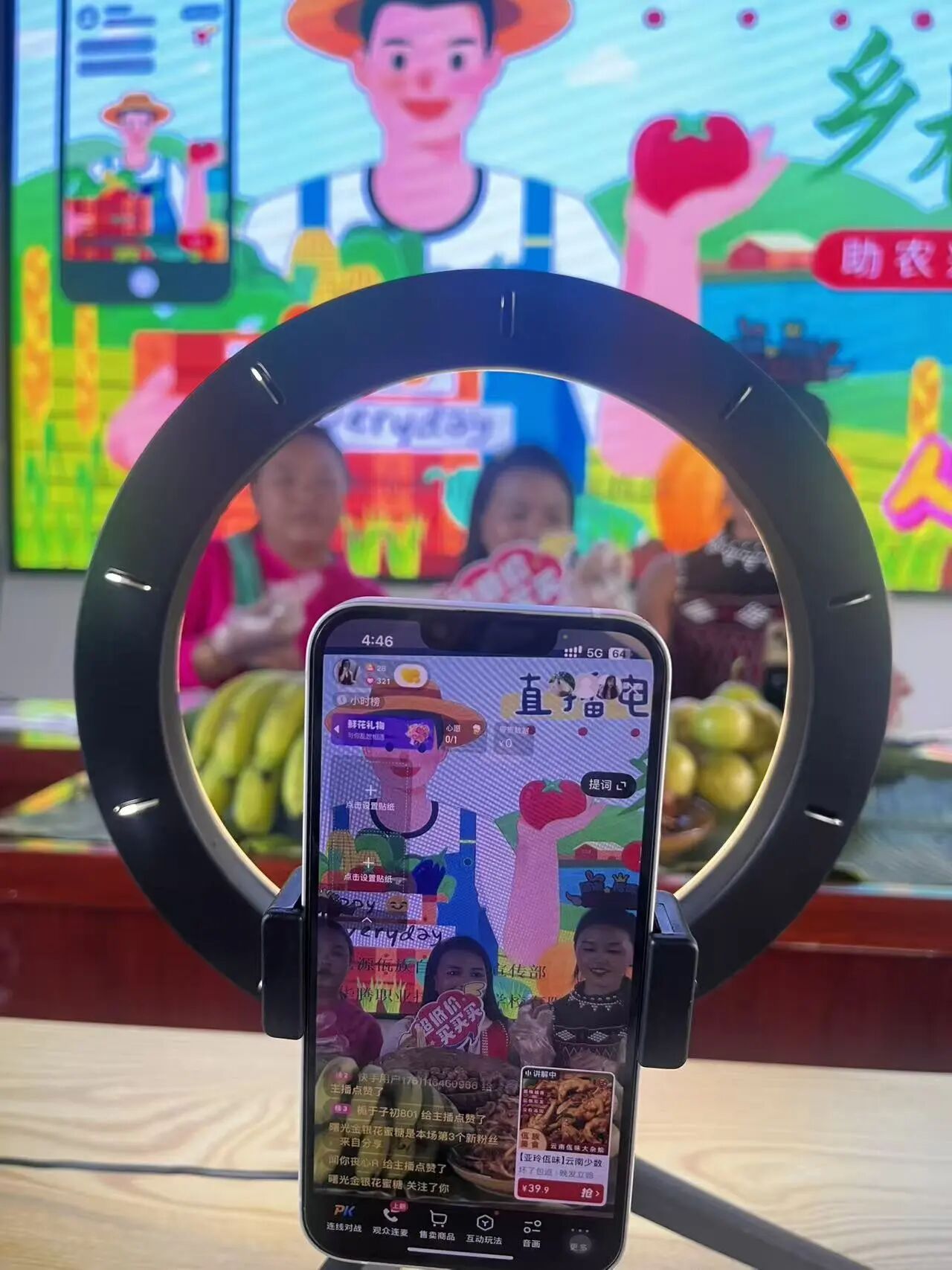培训采用“理论课程+现场实操”模式,专门搭建模拟直播间,学员们分组上阵当“主播”,老师巡回指导补光灯摆放、产品展示话术等细节。现场气氛热烈,村民们围着屏幕反复调试角度,致富带头人更是拿着手机认真记录,时不时追问工具使用技巧,生怕错过关键内容。