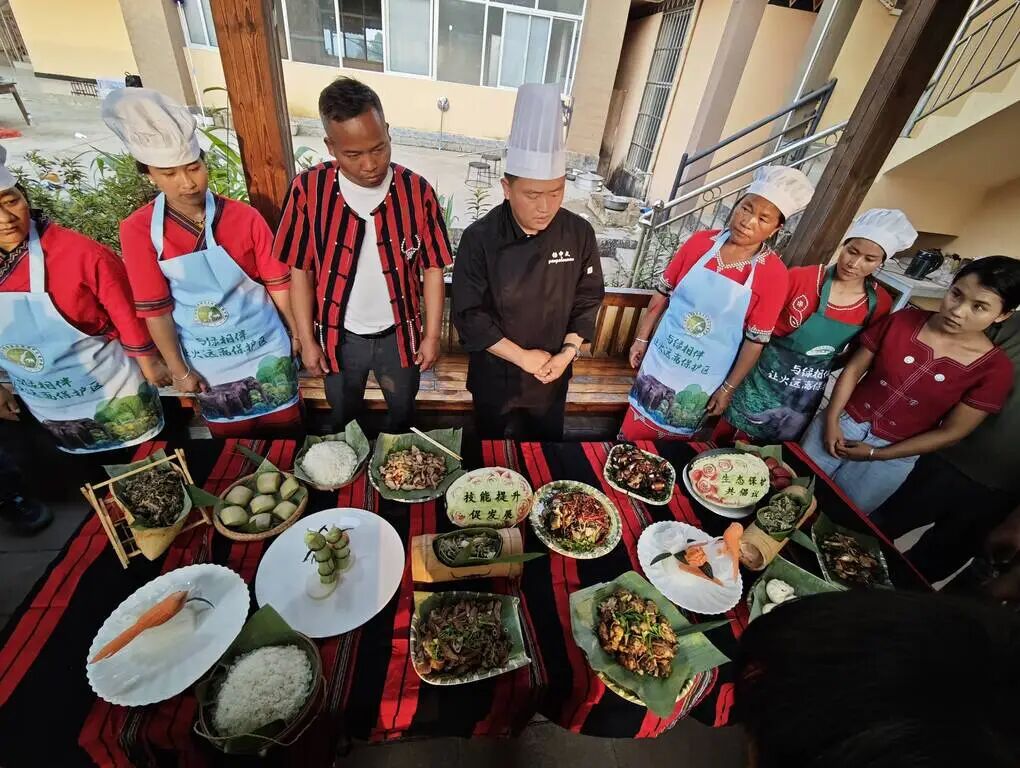 县职校烹饪教师现场实操教学,手把手指导食材甄选、调料配比、火候把控等厨艺技巧,同步开展民宿运营、餐饮服务情景模拟实训,补齐配套服务业短板。