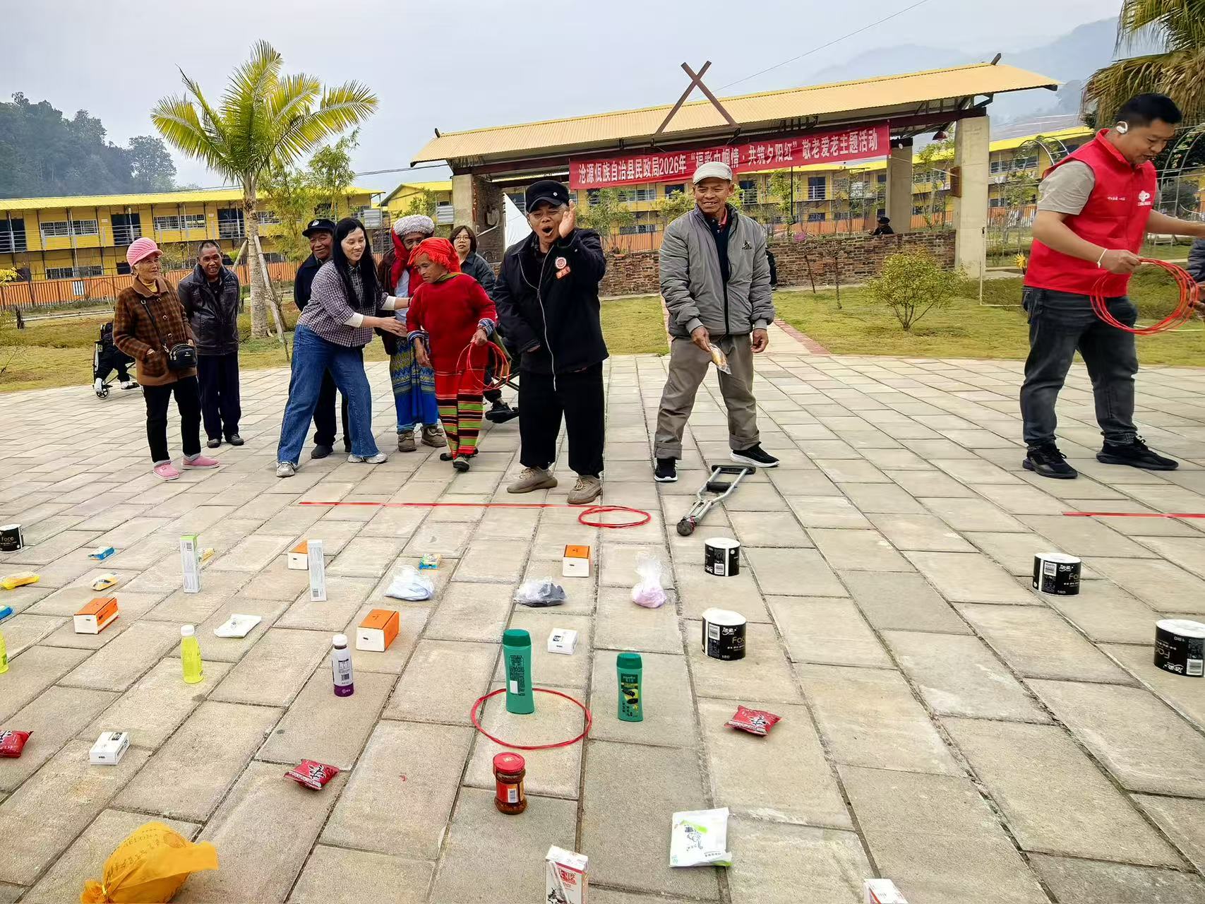 随后开展的套圈趣味游戏将气氛推向高潮,老人们分组参与、踊跃尝试,瞄准、投掷、欢呼,现场气氛轻松热烈。活动以生活用纸、洗发水、牙膏、毛巾、香皂等实用生活用品为奖品,让老人们在互动游戏中收获快乐与实惠,尽享老有所乐的幸福时光。